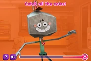 The player is supposed to move their own character around to catch the falling coins.