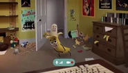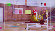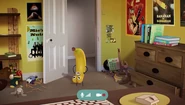 He goes to Banana Joe's profile to find a good picture for the yearbook's front cover. Many of Banana Joe's videos appear in the profile, and Darwin clicks onto one titled "BEDROOM BACKFLIP." The video is a clip of Banana Joe attempting to perform a backflip from "The Compilation." As he did in said episode, Banana Joe fails the first time due to his landing upside down, fails the second time when he falls through his peel and splatters on the floor, and fails the third time when he gets stuck on his ceiling while Banana Bob walks by and collects Joe's empty peel. Darwin stops the video with dissatisfaction. He continues with a video named "BANANA BANAAAANA," a clip from "The Uploads" featuring Joe singing "I Say Banana" while growing extra heads to sing along. Darwin deems the video inappropriate, and switches to a clip from "The Night," wherein Joe chases his rear end in circles. Darwin pauses the video before it even ends, and selects instead a clip from Joe's spinoff show (featured in "The Spinoffs"), Joseph A. Banana's Afterschool Stories, which features Joe as a toddler listening to his parents tell him that they are splitting up. They mean this literally, as they split apart at the stem, and the family dances to "Shave and a Haircut." Darwin is not satisfied with this one either, and watches a video entitled "Banana Joe's Body Jam," a clip from "The Promise," in which Joe attempts to lift a barbell but is slowly and brutally squashed by it.