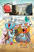 The issue begins with school ending for the day. Students excitedly crowd out. As Gumball and Darwin leave the two discuss and daydream about how little they intend to do when they get home.