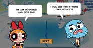 There are also three different types of special throws. The special throw a character receives is dependent on what number denotes them. Gumball, for example, is Character 1, so his special throw is one snowball that does extra damage. Darwin is Character 2, so his throw is three snowballs that spread out, and Anais is Character 3, so her throw is two rotating snowballs. The same method is applied to distribute special attacks amongst the characters of other teams. In addition, there is a bar at the bottom of the screen that fills up as damage is dealt to the enemy. The player's bar is to the right, while the enemy's bar is to the left. When this bar is full, a "super throw" is unlocked, which is the selected character's special throw, but with extra damage.
