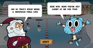After each victory, the player recieves three stat points to distribute as they please into power, health, and speed. There are eight teams to defeat: seven random teams (in no particular order), followed by Santa.