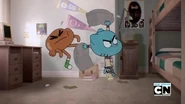 - When Gumball removes his belt, the belt buckle stays on instead of disappearing from his trousers.