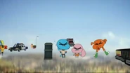 - Gumball: Quick! Let's run away as fast as we can in a straight line!