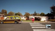 - Darwin breaks the fourth wall by sneezing onto the screen, cracking it at the end of the episode.