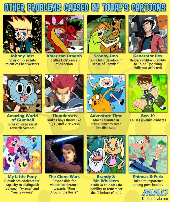 The show is mentioned in a column discussing the problems modern cartoons have caused. It claims that Gumball has caused children to become racist against the Swedish. |