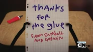 - After Banana Joe reads the note Gumball left on his desk, the tube of glue disappears.