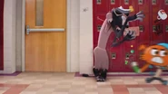 Banana Joe is merrily walking down the school halls to his locker, whistling a cheerful tune along the way. In contrast, Gumball and Darwin are sprinting as fast as possible to get there before he does. On their way, they inadvertently set off several accidents: Rocky falling from a ladder, Miss Simian's mug falling on the floor, Alan popping from touching Carmen's spines, and Clayton being slammed by a door. Joe arrives at his locker and finds it open and his belongings vandalized, including the pen.