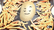 Eventually they arrive at Idaho's home, which is a farmland, and Gumball carries the ailing potato to his family. Idaho's father takes him, and buries him. The Wattersons assume he has died, so they begin crying and singing an elegy for him. Shortly, Idaho pops out of his dirt bath, completely refreshed. The Wattersons are relieved, and Idaho's uncle offers them to stay in the fields in order to get away from their unhealthy lifestyle; however, the Wattersons drive off as he finishes speaking and go to Joyful Burger.