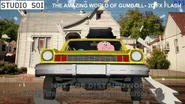 - [Richard drives up a ramp too fast causing the car to jump and making Idaho hit the car's roof then Gumball gasps]