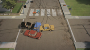 - [He tries to jump over his car, but instead moves through it with his butt. He gets tired after running a little]