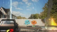 - [Gumball and Darwin run off the road. The sheriff stops his car, and chases them]