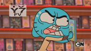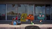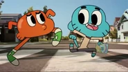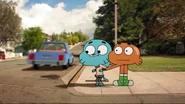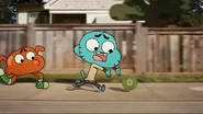 - [Gumball looks angrily at Darwin, who look at Gumball nervously, then they chase the DVD down the road again]
