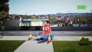- [Gumball runs with a large garbage bin.]