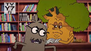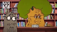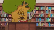 The tree librarian is depicted as a wise, nurturing character in her debut in "The Blame." She watches happily as multiple students enter the library as she muses over that despite living in a digital age, she finds solace in the assumed knowledge that the students still felt solace in books (unaware of their real intention to play video games).